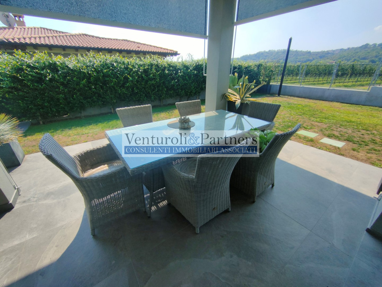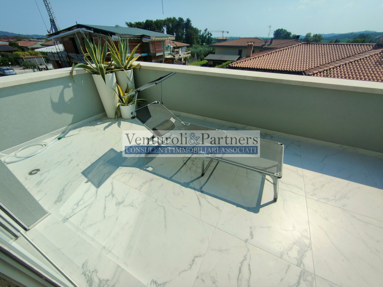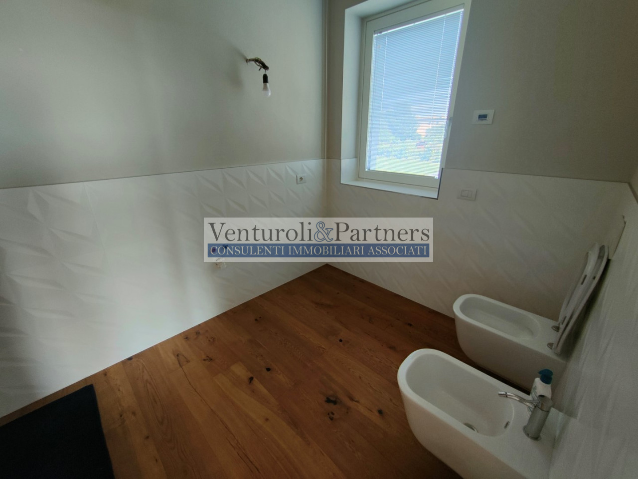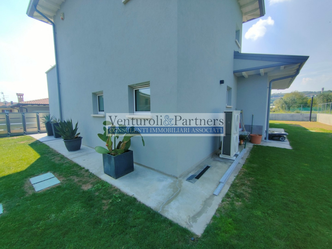 Nuovissima abitazione ad alte prestazioni energetiche realizzata nell'anno in corso. Lotto di 600mq con garage al piano terra, lavanderia, portico, camera e bagno; soggiorno con possibilità della seconda camera, cucina a vista, camera in torretta con bagno padronale e terrazza. Stupenda da vedere.